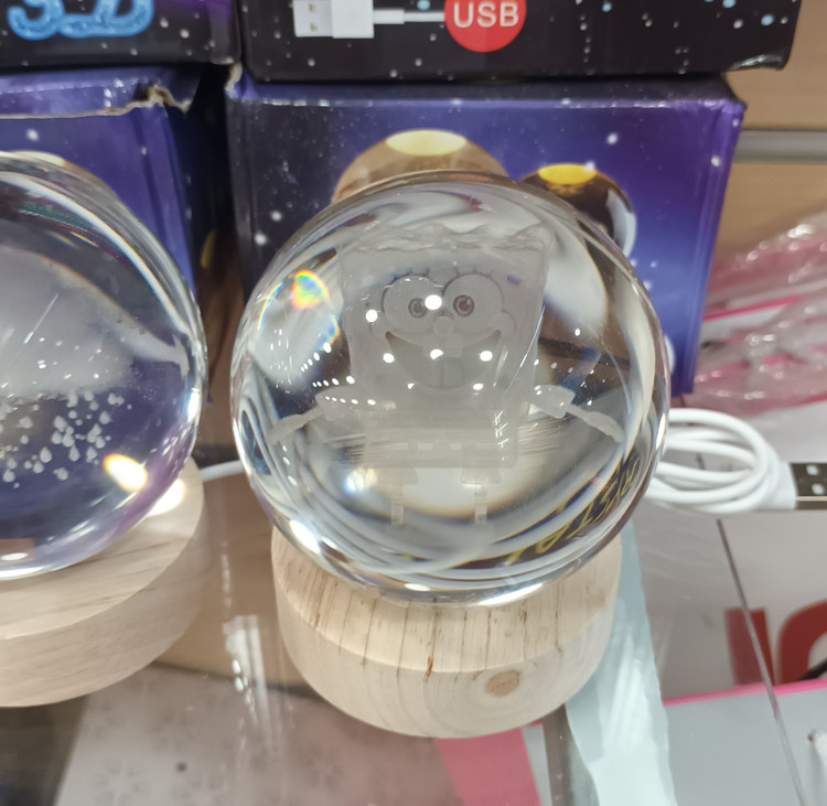 گوی کریستال سهبعدی طرح باب اسفنجی سایز 8 LED
