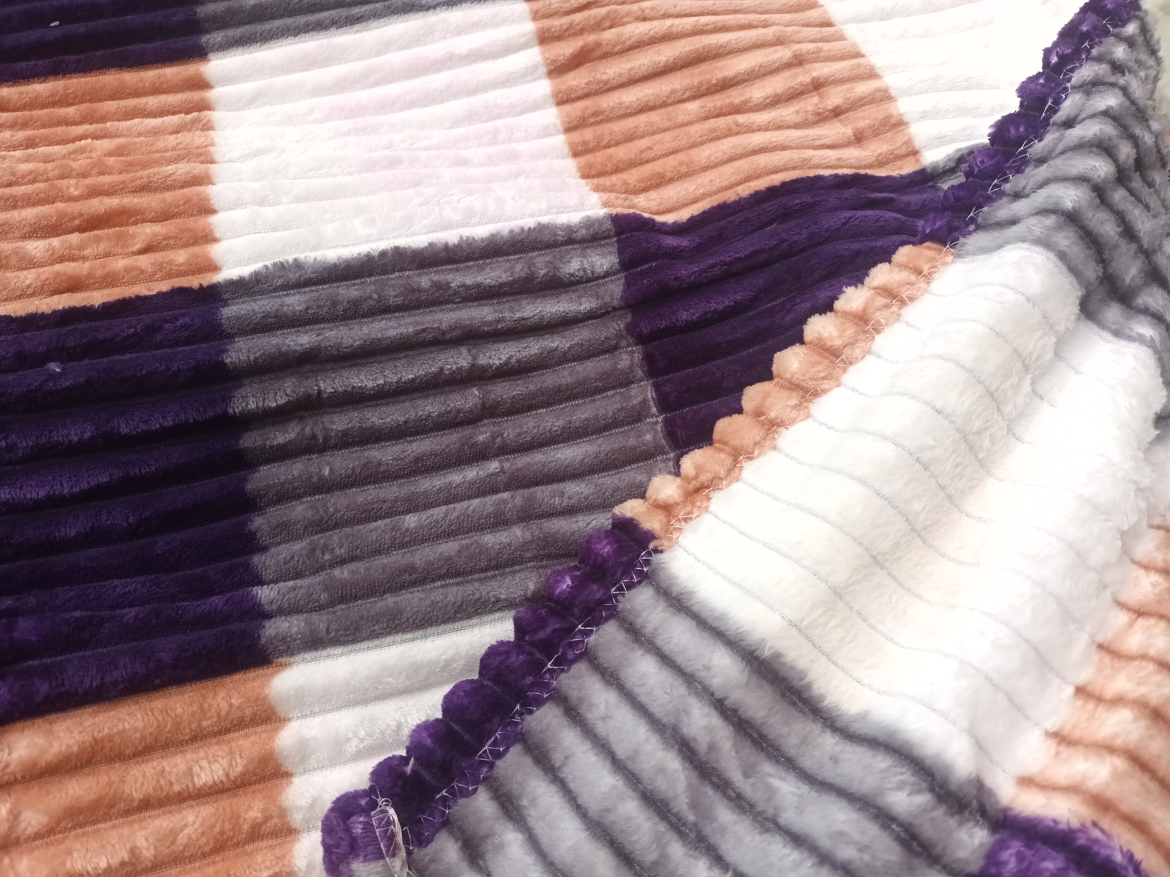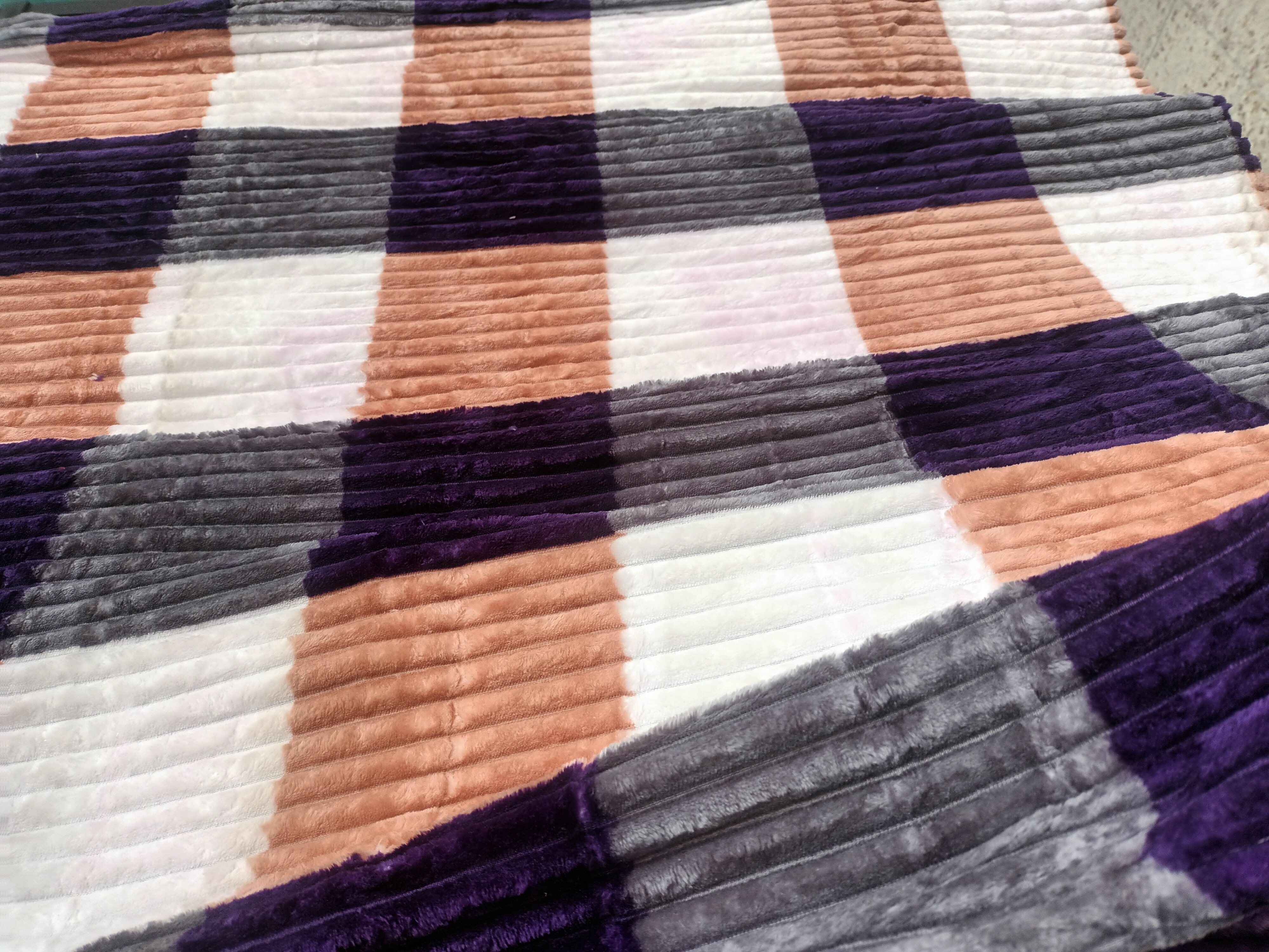 پتو مسافرتی یک نفره تراکم بالا کرکره ای چهارخونه بنفش