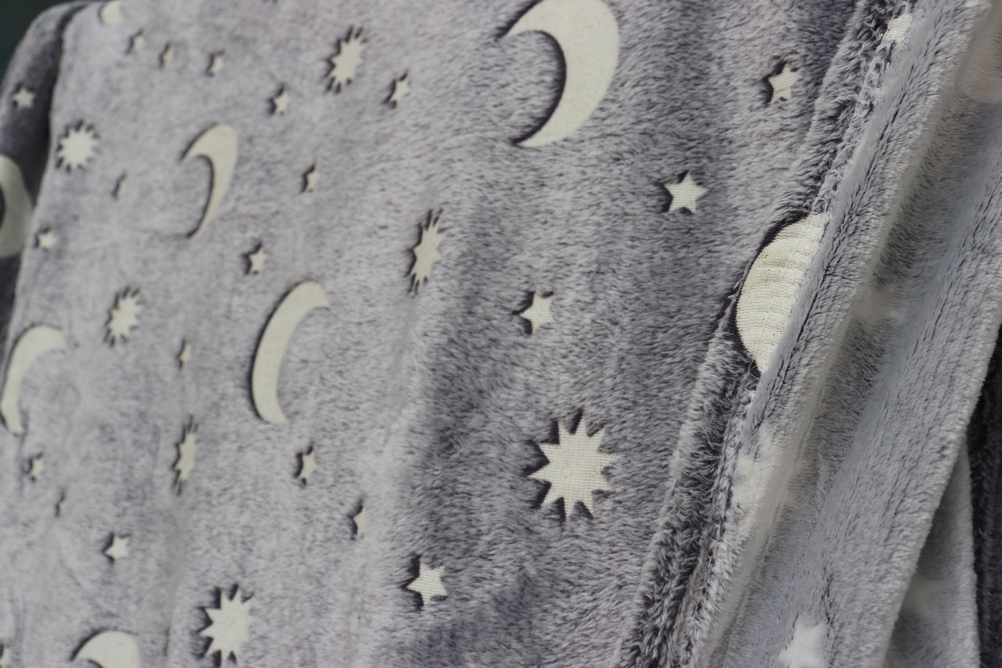 پتو شب نما دو نفره ماه و ستاره طوسی کم رنگ✨ 🌙